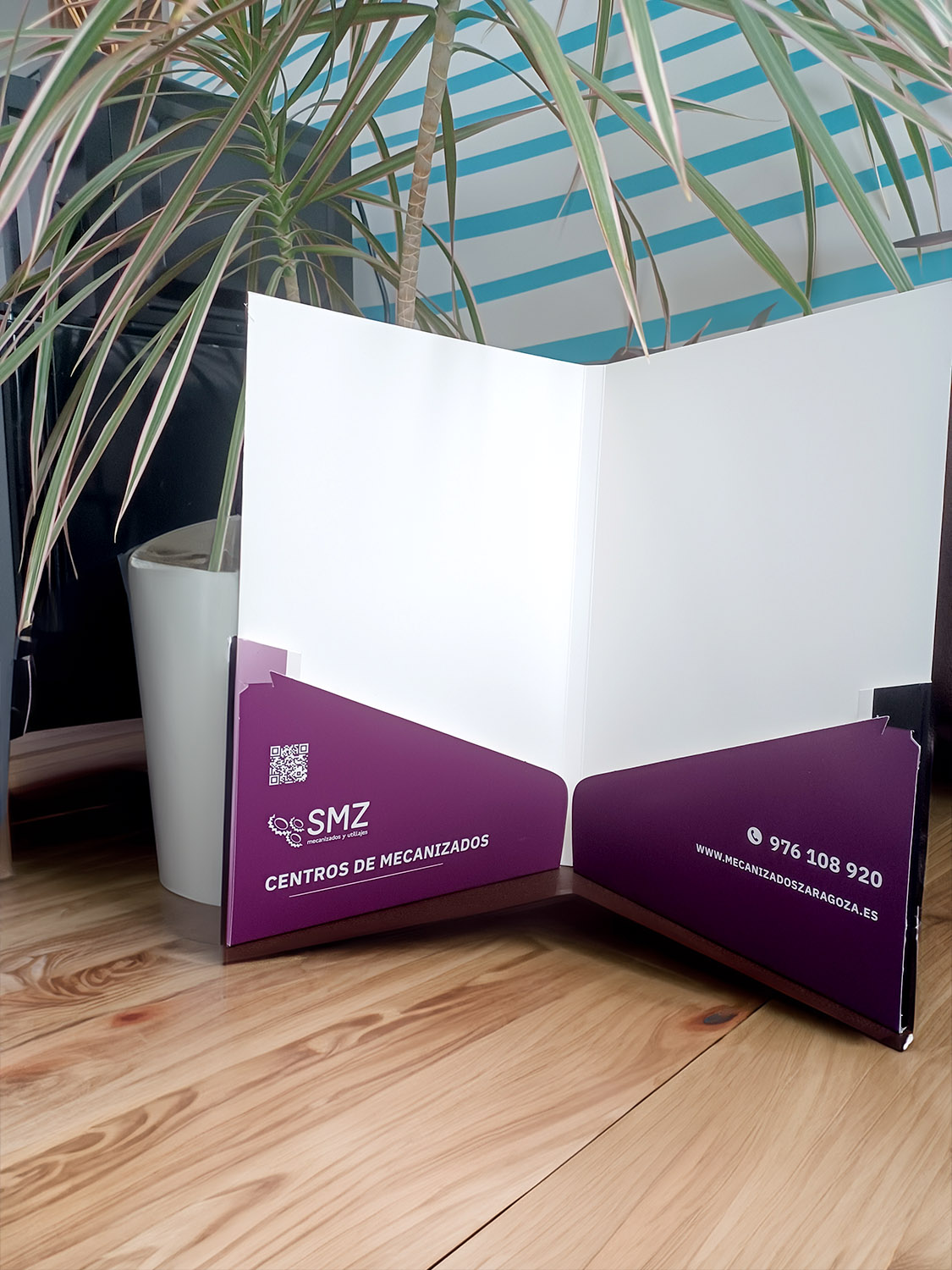 Diseño de carpetas con solapas SMZ MecanizadosDiseño de carpeta con solapas en ambos lados, para la empresa aragonesa SMZ Mecanizados.Colores acorde a marca corporativa con sus principales servicios para ofrecer, de forma más adecuada a la empresa, sus presupuestos a los clientes.